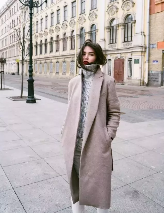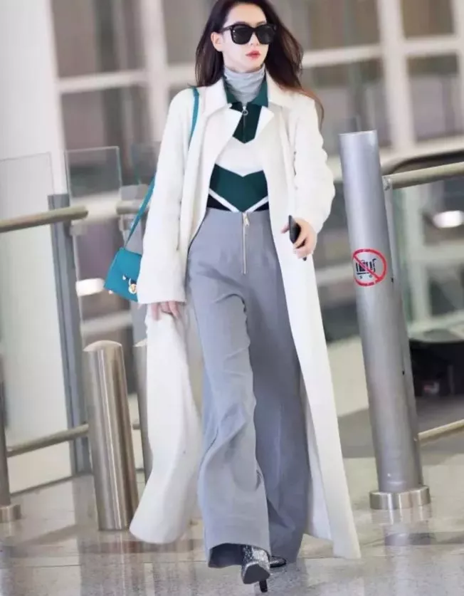 浅白色的高领毛衣+暖色大衣,这种暖感的颜色瞬间暖化优梨的心,走在街上回头率200%。