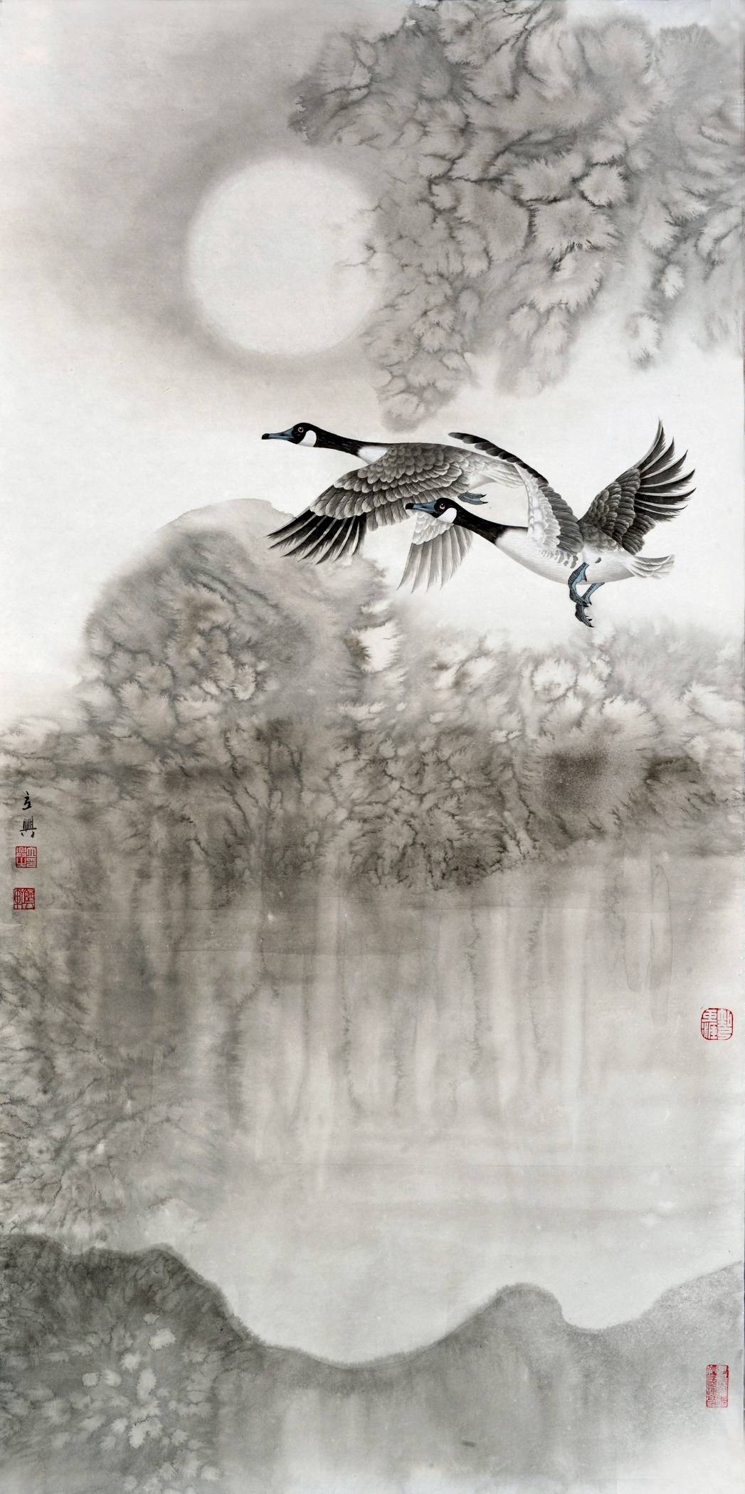 2009作年品《鸟影梦寒塘》人选 2009年全国中国画展。