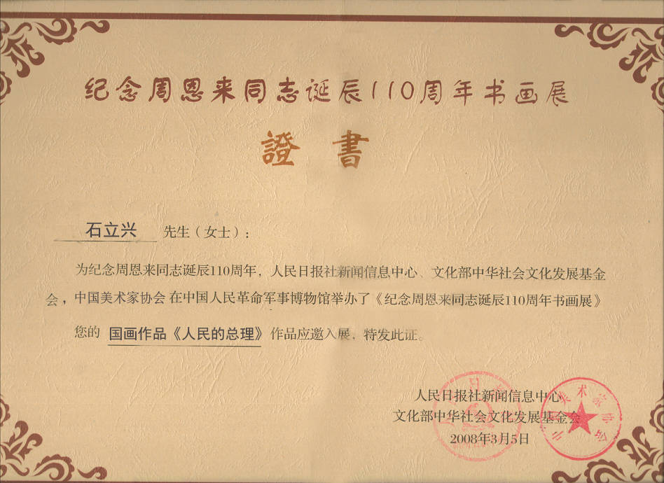 2008年作品《人民的总理》被中国人民革命军事博物馆收藏。