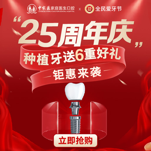 本次中家医家庭医生口腔25周年庆联合了数百家口腔医疗行业各大知名品牌及厂家如:瑞士ITI、法国安卓健、美国皓圣、时代天使、隐适美等,坚持初心共同为广大市民,实事求是以高品质实惠价提供种植、矫正、修复美白等口腔产品和服务。活动贯穿9月下半旬及整个10月,围绕着“六项豪礼,五大优惠惠全城”展开,具体活动如:
