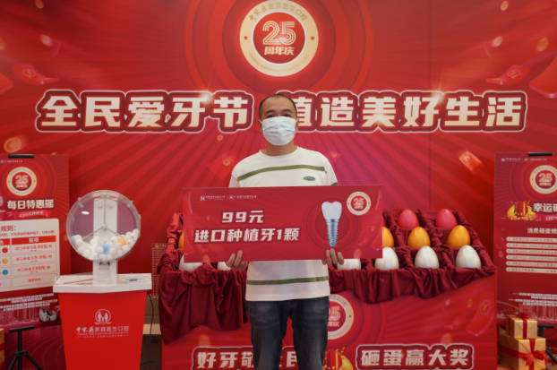 中家医家庭医生口腔25周年庆特色活动每日特惠摇,摇中不同颜色的球,市民能以不同特惠的价格种上进口好牙,如摇中蓝球,99元种牙;摇中黄球9.9元种牙;摇中红球0.99元种牙。该活动在中家医家庭医生口腔25周年庆活动中以其独具的特色更是受到市民们的欢迎。