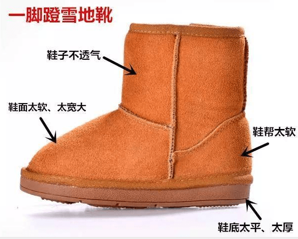 事实上,对孩子来说,雪地靴确实有些“中看不中用”。因其主要存在三个问题:太宽松、鞋底平、后跟软。