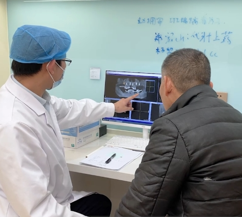 北极星口腔疑难种植中心安排专家团队展开联合会诊,决定通过B-STAR数字化系统,采用导航跨神经管种牙技术为高叔叔进行治疗。这项技术能够精准地定位神经管的位置,在手术过程中不会对其造成任何损伤,从而大大降低了手术风险。