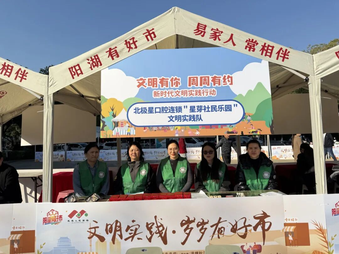 北极星口腔连锁"星芽社民乐园"志愿者文明实践队派出了武进机构清一色的5位"巾帼范儿"参加了活动。
