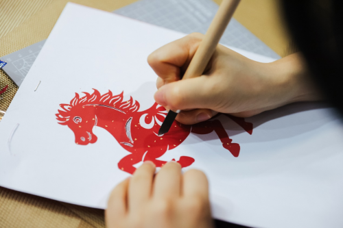 活动现场,四大非遗体验与两项传统游戏相映成趣,热闹却不失雅致。宋锦手工制作、螺钿挂件DIY、新年祈福拓印、传统窗花剪纸四个体验台前,手工匠人悉心指导,爱好者们手执宋锦、螺钿等材料,一针一线缝制小马挂件,一粘一贴拼搭新年吉物,将对未来的美好期许,悉数藏进件件精巧的传统手作之中。