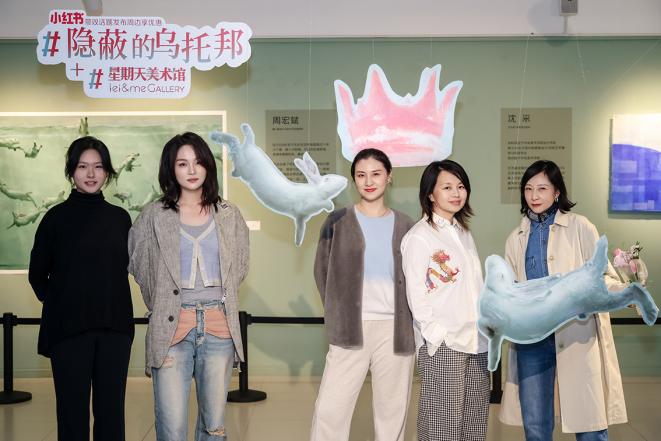 (从左到右参展艺术家 韩佳希、沈采、执行策展人张译元、艺术家米玉明及好友吴泓靖)