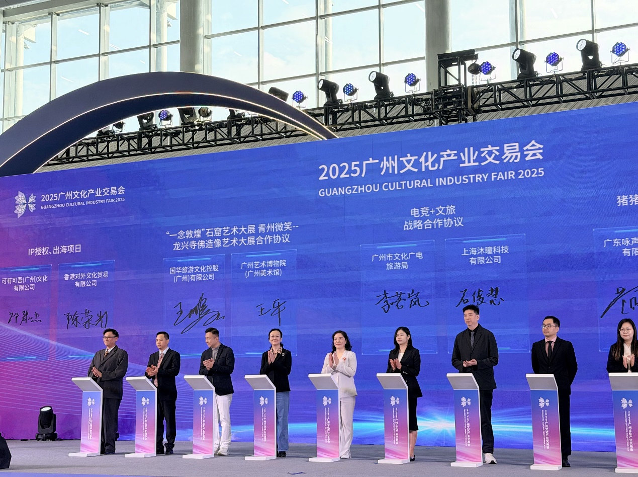 开幕式上,在众多嘉宾与媒体的见证下,国华旅游文化控股(广州)有限公司与广州艺术博物院(广州美术馆)就共同举办 “一念敦煌”石窟艺术大展 与 “青州微笑”艺术展 两个重磅文化展览项目举行了场地合作签约仪式,标志着两大承载中华文明精粹的传统文化艺术IP即将登陆华南,为湾区观众带来跨越时空的文化盛宴。